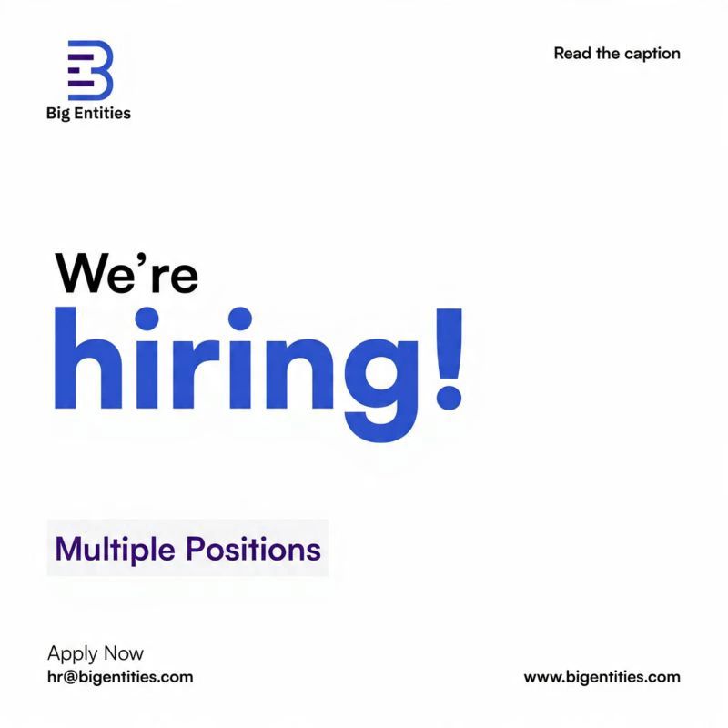 Big Entities is looking for talented professionals ready to grow, innovate, and make an impact in a dynamic work environment. 💼✨
