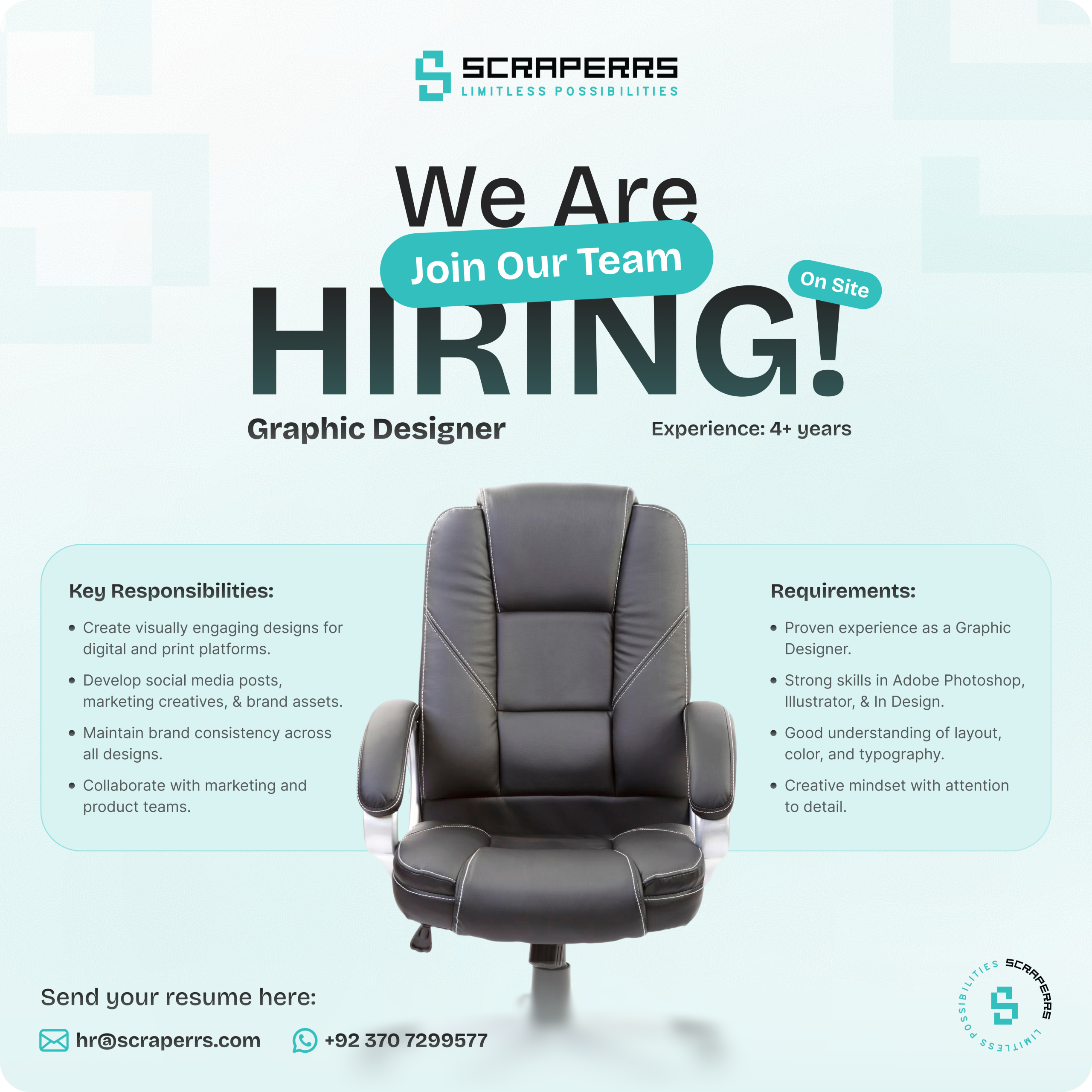 Scraperrs is looking for an experienced Graphic Designer who can turn ideas into impactful visuals. If you have a strong design sense and enjoy working on digital and print creatives, this role is for you.